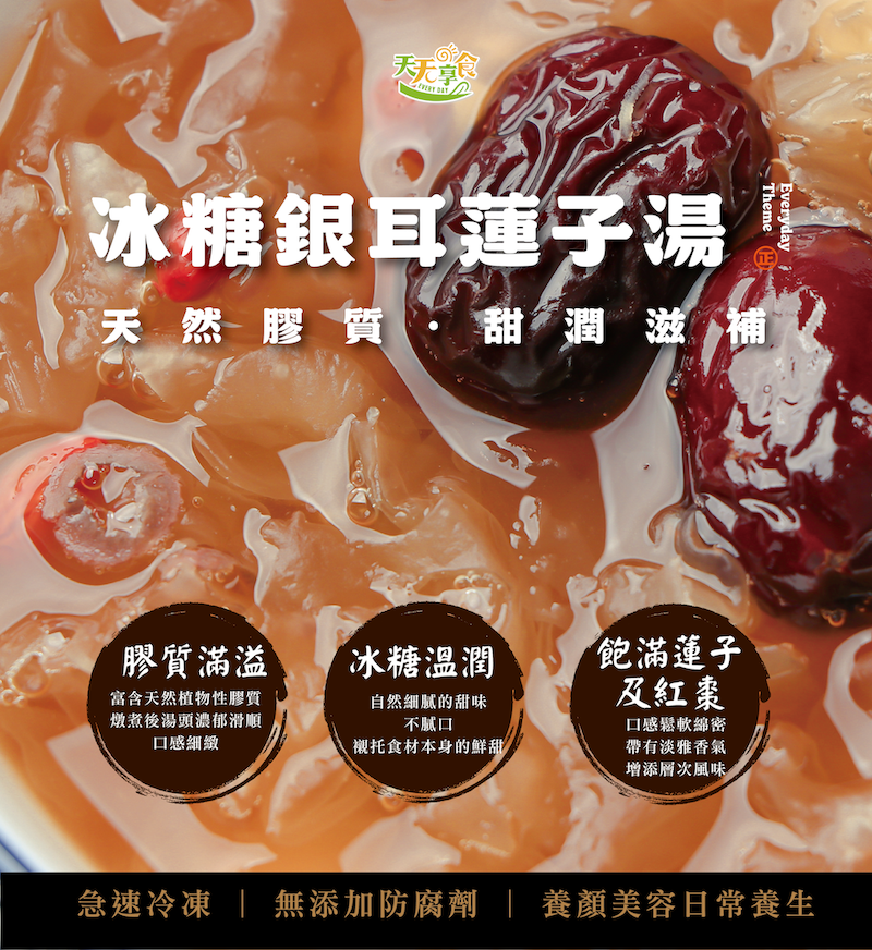 內容物:水、白木耳、冰糖、桂圓、紅棗、砂糖、枸杞、蓮子